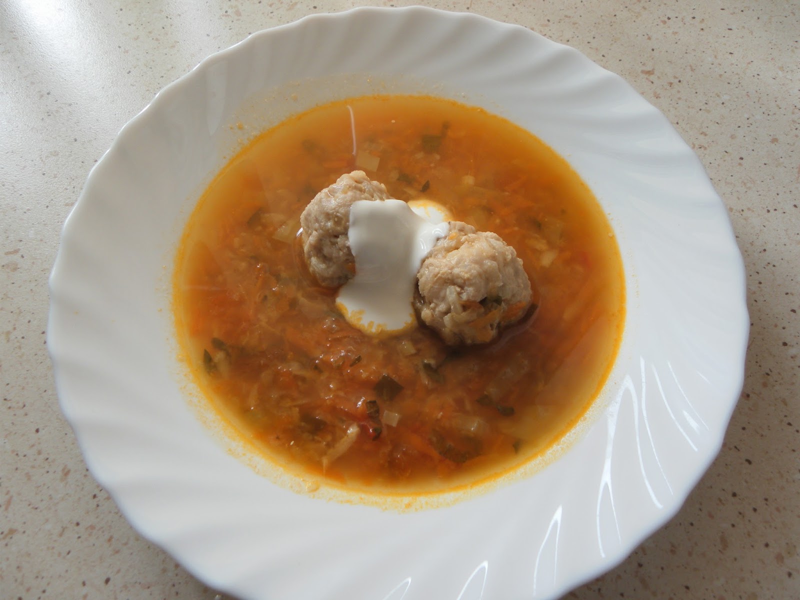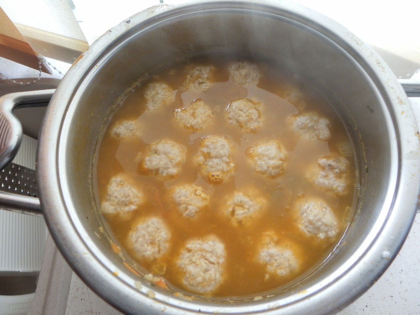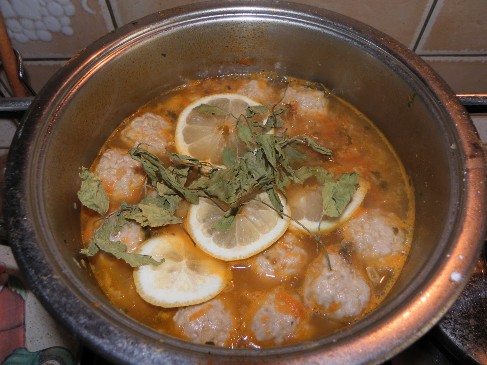 Előkészítjük a húsgombócokat az összetevők összekeverésével és amíg a leves fő pihentetjük a hűtőben. Amikor a leves majdnem kész kis gombócokat formázunk belőle és lisztben megforgatjuk és így adjuk a leveshez. 10-15 perc alatt készre főnek, ekkor a megmosott citromból levágunk 5 karikát és lestyánnal együtt beledobjuk a levesbe. Egyet forralunk rajta majd azonnal kivesszük a citromkarikákat(fontos gyorsak legyünk mert ha nem túl citromos lesz!). Tálaljuk finom friss tejföllel, isteni leves, megéri elkészíteni!