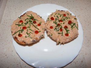 Ma egy ilyen főzős nap lett, mindenféle kísérletek folytak a konyhában 🙂 amíg a garnélát előkészítettem összedobtunk egy fincsi tonhalkrémet.